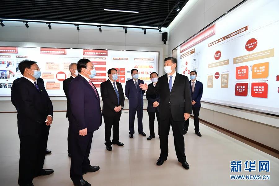 慶祝大會(huì)后,總書記來到浦東展覽館,參觀“在國家戰(zhàn)略的引領(lǐng)下——浦東開發(fā)開放30周年主題展”。