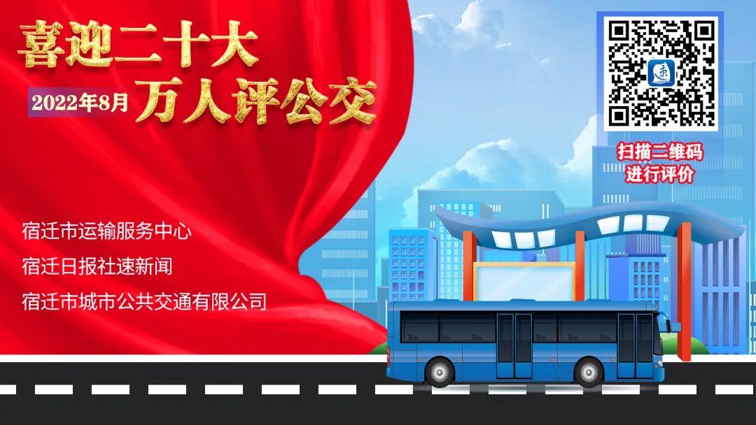 為繼續(xù)以公交新變化應對市民新需求,以服務新提升惠及群眾大民生,讓每一位生活在這座城市的市民可以共享城市發(fā)展的便捷,讓每一位來到宿遷的游客都能深刻感受到公交的人性化,在黨的二十大即將召開之際,宿遷市運輸服務中心、宿遷日報社速新聞、宿遷市城市公共交通有限公司聯(lián)合開展“喜迎二十大 萬人評公交”活動,邀請廣大市民對宿遷城市公交運營情況作出客觀評價、提出寶貴意見和建議。