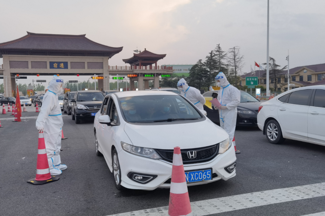 還記得那時(shí),天剛亮,范金勝和李健便提前到達(dá)寧宿徐高速公路宿遷主線收費(fèi)站,穿上防護(hù)服交接班后,便自覺站到指定崗位。八人一組的隊(duì)伍,各自都有明確的任務(wù)分工,每有一輛車駛?cè)氤稣究谶M(jìn)入檢查區(qū)域,都會(huì)有相應(yīng)的防疫志愿者主動(dòng)上前仔細(xì)篩查,發(fā)現(xiàn)高風(fēng)險(xiǎn)地區(qū)來宿車輛便主動(dòng)迎上去,檢查車上人員健康碼和行程碼,查驗(yàn)48小時(shí)內(nèi)核酸檢測(cè)報(bào)告。