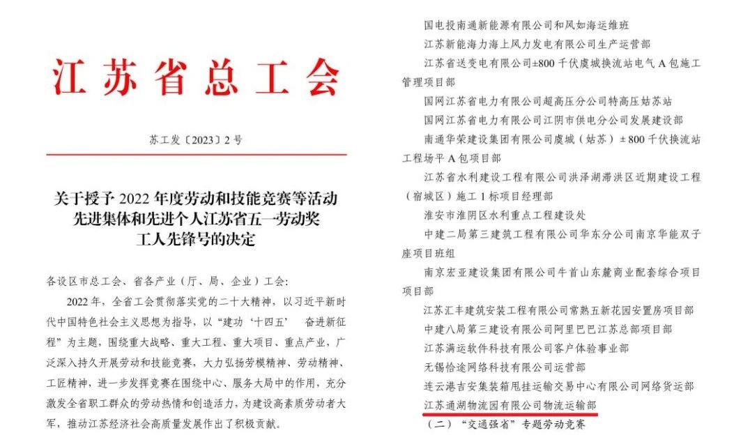 【通湖物流園】物流運(yùn)輸部獲評“江蘇省工人先鋒號(hào)”