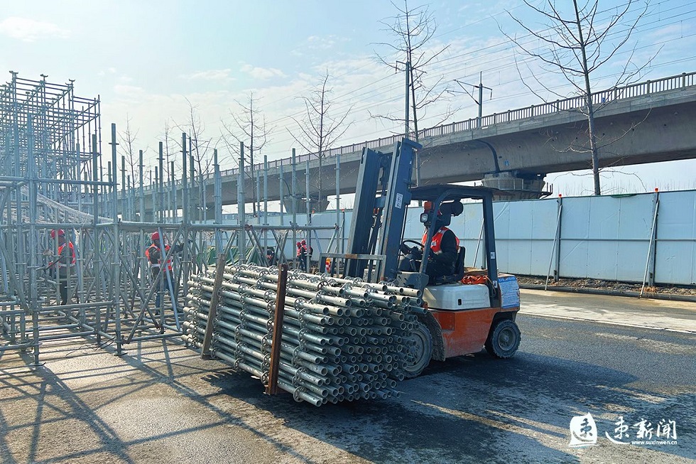 “我們工人大部分是外地的,目前已陸續(xù)返崗復(fù)工。”宿遷市港城路上跨鐵路專用線橋梁工程施工單位現(xiàn)場負(fù)責(zé)人介紹,今天上午六點(diǎn)多就開工了,大家齊心協(xié)力、分工協(xié)作,正在同步開展現(xiàn)澆箱梁預(yù)應(yīng)力張拉和支架搭設(shè)。
