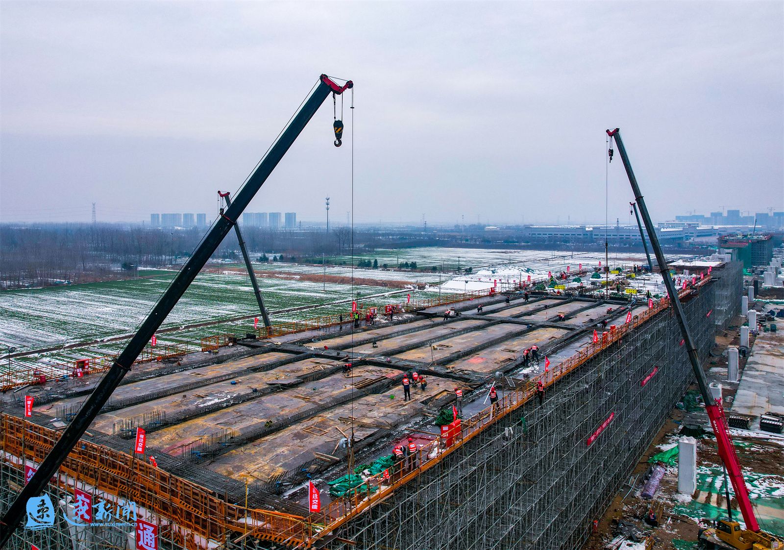 2月28日,在宿遷市酒都路(原張家港大道一期)快速化改造工程現(xiàn)場(chǎng),施工器械不斷運(yùn)轉(zhuǎn),工人正在緊張施工。