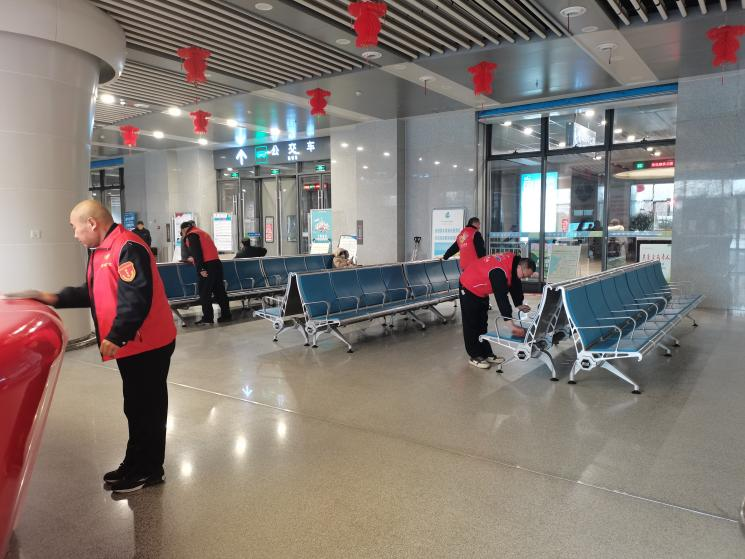 與此同時(shí),在高鐵公交樞紐站,身穿紅色馬甲的志愿者們分工明確、不停忙碌,有的負(fù)責(zé)維護(hù)現(xiàn)場秩序,有的則熱心導(dǎo)乘、幫扶老弱。待人潮散去后,他們又一起將候車區(qū)座椅擦拭干凈。他們的用心服務(wù)得到了來往乘客的一致稱贊,在志愿服務(wù)站穿梭的“志愿紅”成為一道亮麗的風(fēng)景線。