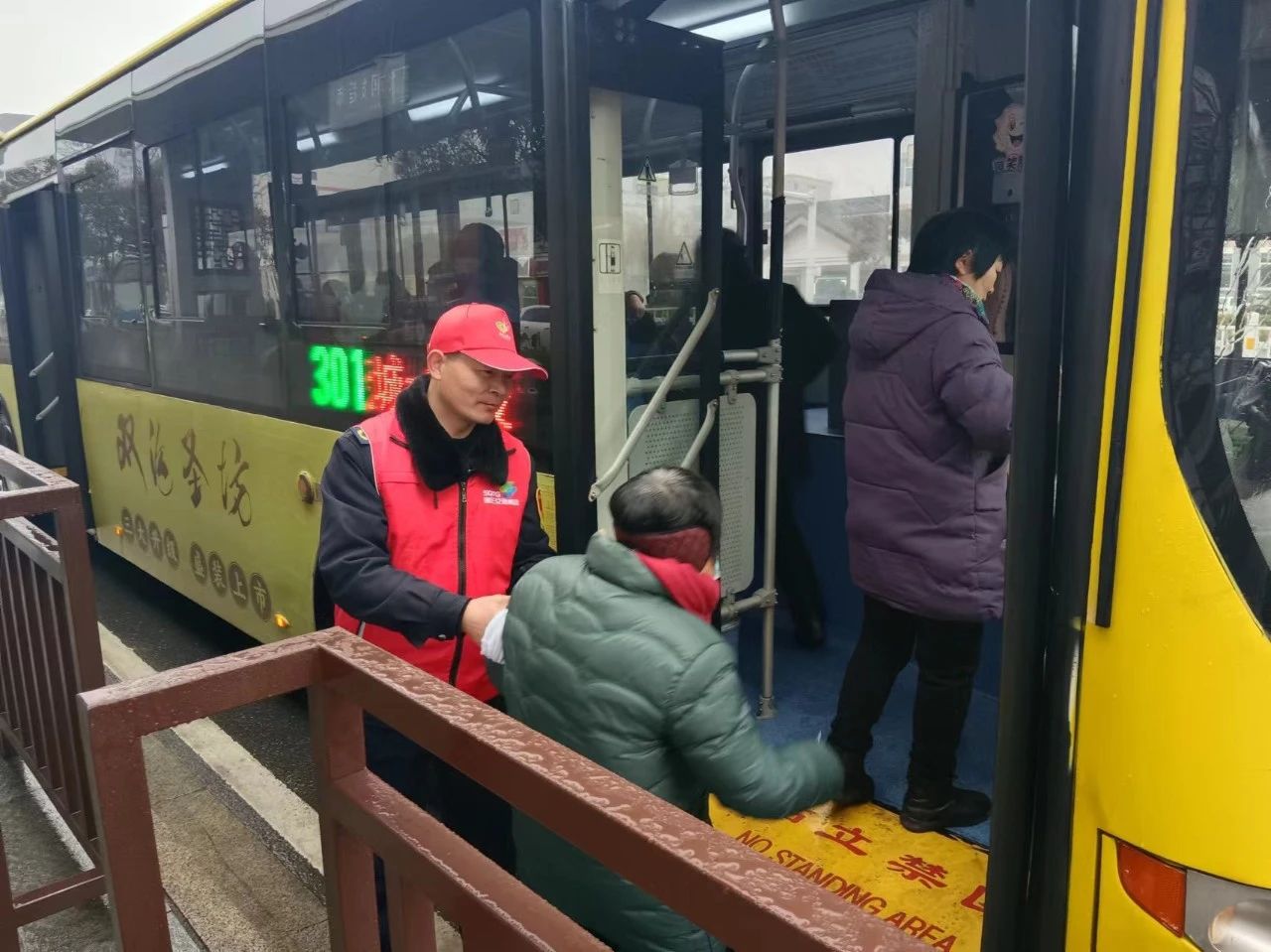 上午8時(shí)30分左右,在市區(qū)大潤發(fā)站、中醫(yī)院站就出現(xiàn)了一批由K202路“雷鋒車隊(duì)”駕駛員組成的志愿者隊(duì)伍,他們頭戴小紅帽,耐心疏導(dǎo)乘客、攙扶老人、解答疑問,在他們的努力下,公交站臺(tái)乘車秩序井井有條。據(jù)悉,公交公司K202路自去年3月被正式命名為“雷鋒車隊(duì)”以來,全體駕駛員以“群眾為本,助人為樂,揚(yáng)善向上,奉獻(xiàn)社會(huì)”為服務(wù)宗旨,爭作雷鋒精神的忠誠守護(hù)者、傳承者、踐行者,為廣大群眾提供更加便捷、更有溫度、更高效率的公共出行服務(wù)。