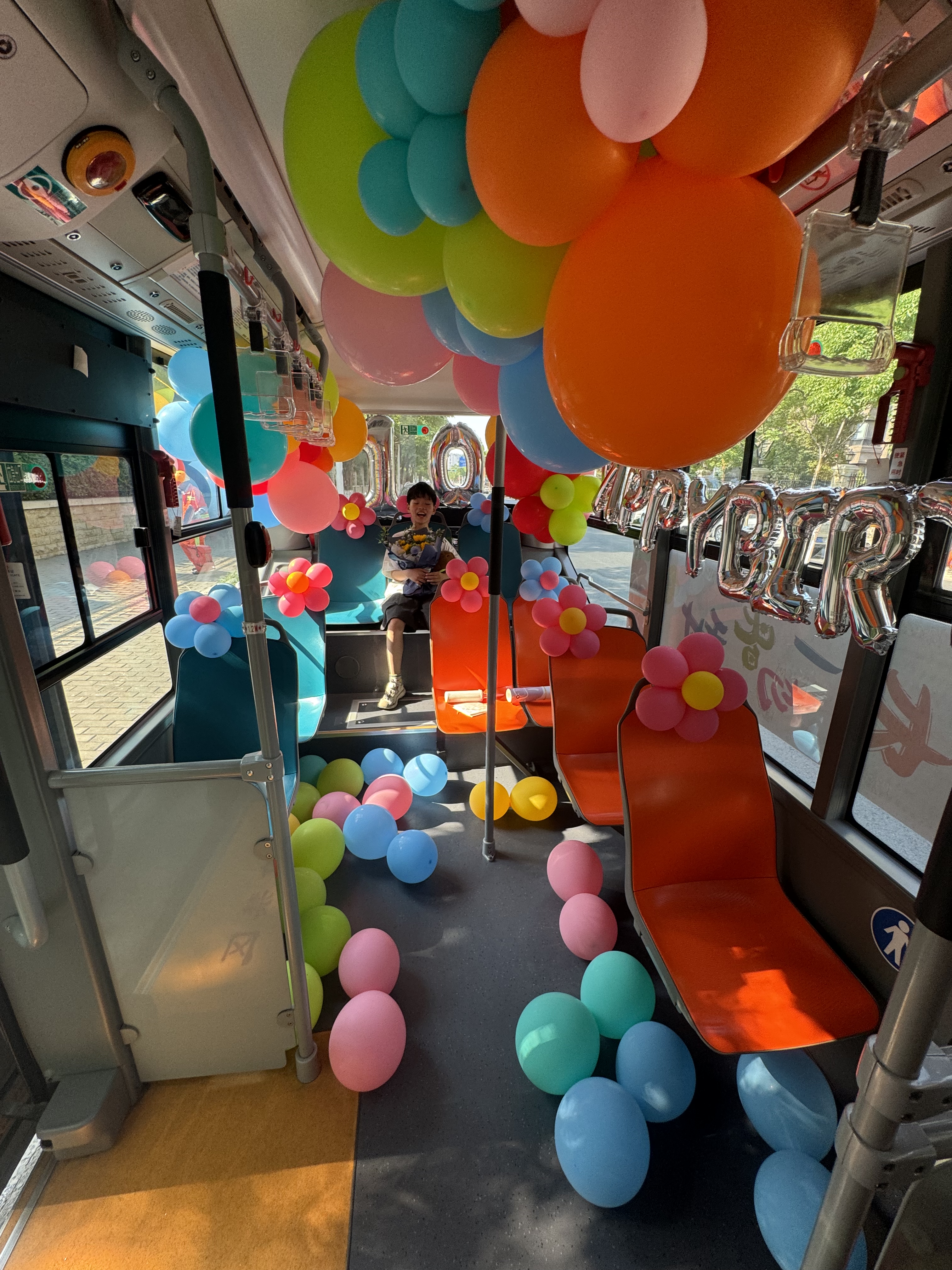 當(dāng)天上午,過(guò)生日的悠悠滿懷期待地和朋友們登上了“酒都小巴”,車身內(nèi)外彩色爛漫的氣球,精心準(zhǔn)備的生日祝福語(yǔ)裝點(diǎn)著這輛車牌號(hào)為“520”的公交車,孩子們都興奮的手舞足蹈,一路拍照合影,留下了美好的回憶。