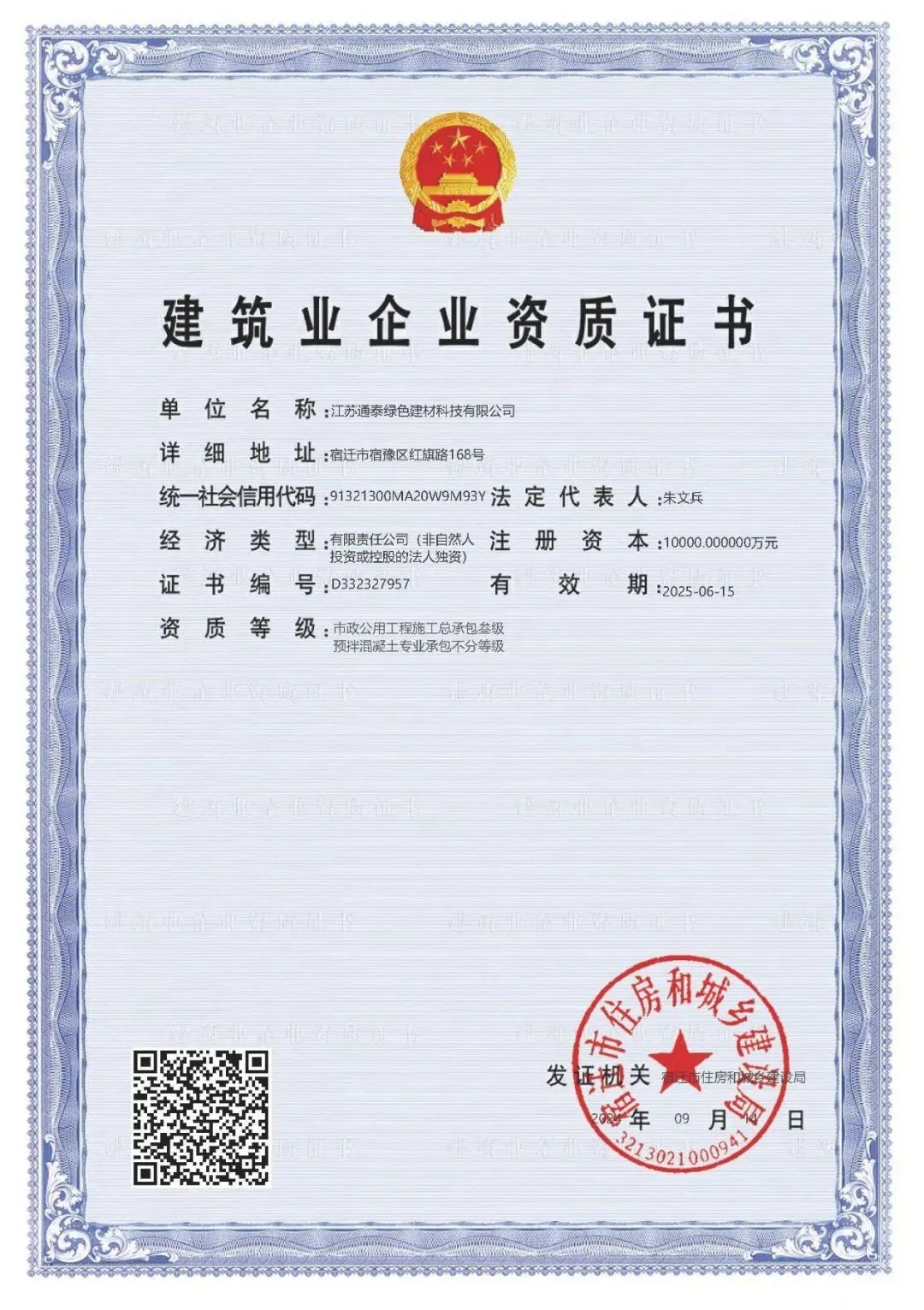 【宿遷交建】通泰建材成功獲得預(yù)拌混凝土專業(yè)承包資質(zhì)