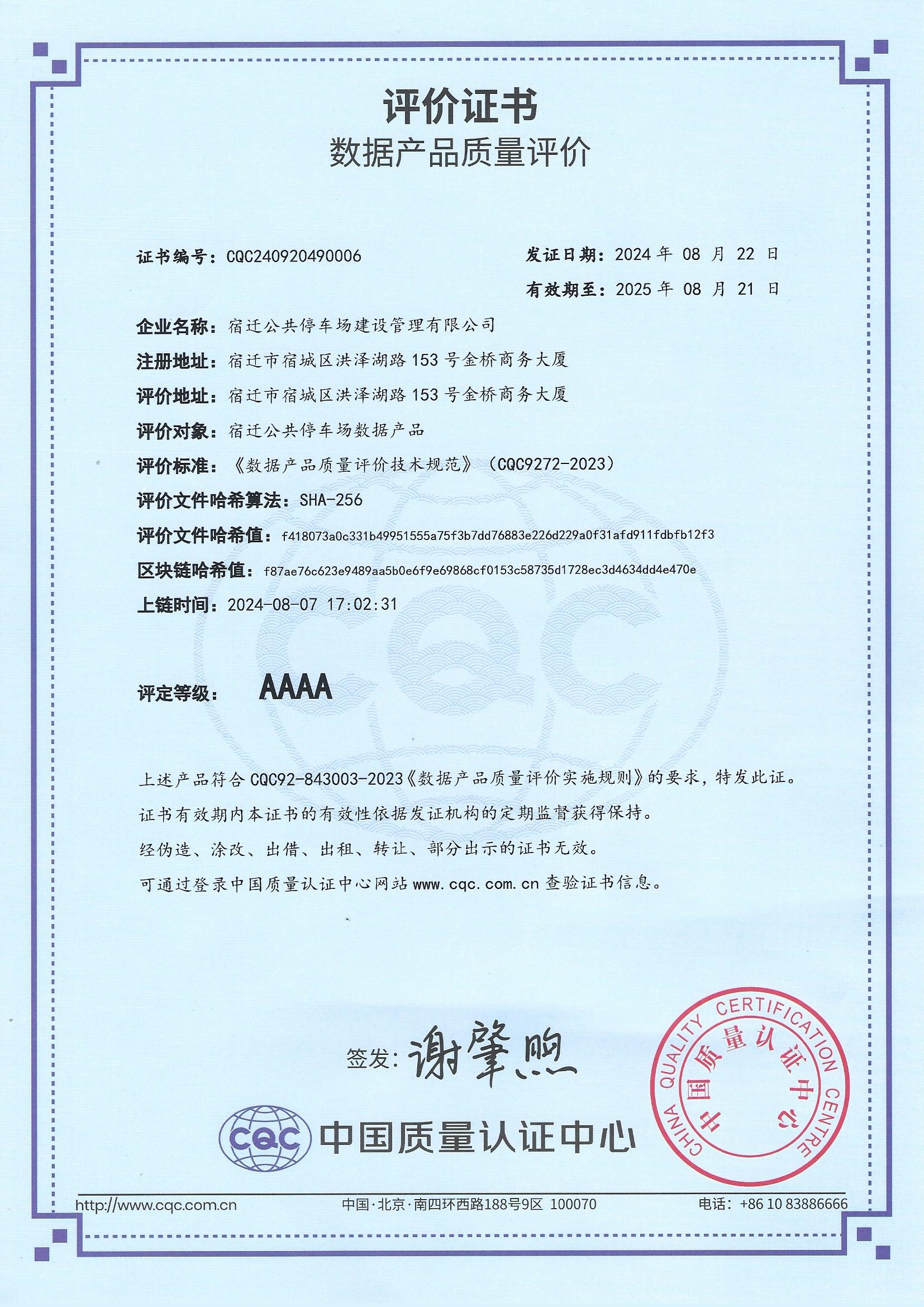 近日,宿遷交通集團所屬企業(yè)宿遷市交通科技發(fā)展有限公司(原宿遷公共停車場建設管理有限公司,以下簡稱“交通科技”)完成全市首個數(shù)據(jù)資產入表工作,數(shù)據(jù)資產入賬價值達400萬元,評估價值逾2300萬元。經(jīng)中國質量認證中心認定,該數(shù)據(jù)產品質量等級為4A級,為全市首張4A級證書,也是全省迄今為止第二張4A級證書,標志著宿遷數(shù)據(jù)知識產權登記、保護工作取得了新突破。