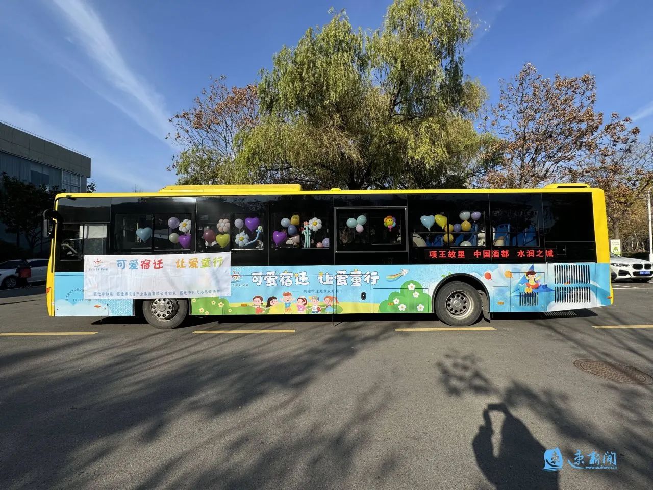 車(chē)窗被繽紛的氣球“占領(lǐng)”,車(chē)身貼著“可愛(ài)宿遷 讓愛(ài)童行”的標(biāo)語(yǔ)……11月23日下午,宿遷市人民大道群眾大廈的院子里停放了一輛兒童友好公交巴士,等待著孩子們用愛(ài)和童趣裝點(diǎn)它。