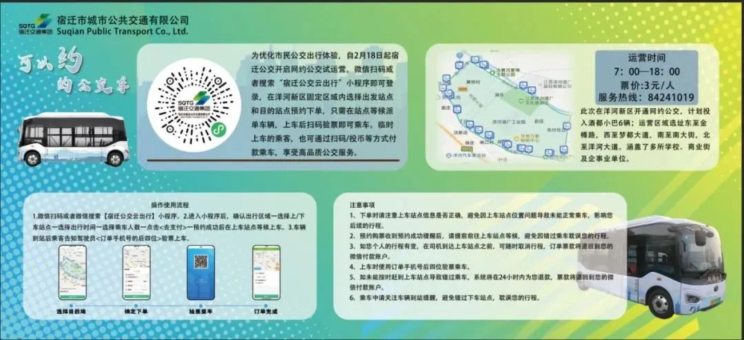 “線上約車、線下掃碼、車隨人走”的宿遷網(wǎng)約公交車,2月18日正式在洋河新區(qū)上線啦!