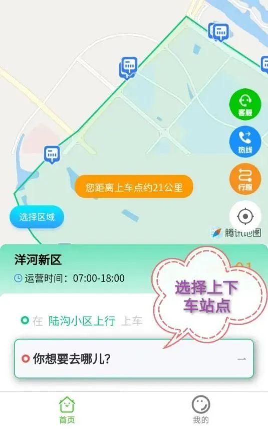 ②:進(jìn)入小程序后,選擇上下車站點(diǎn)。