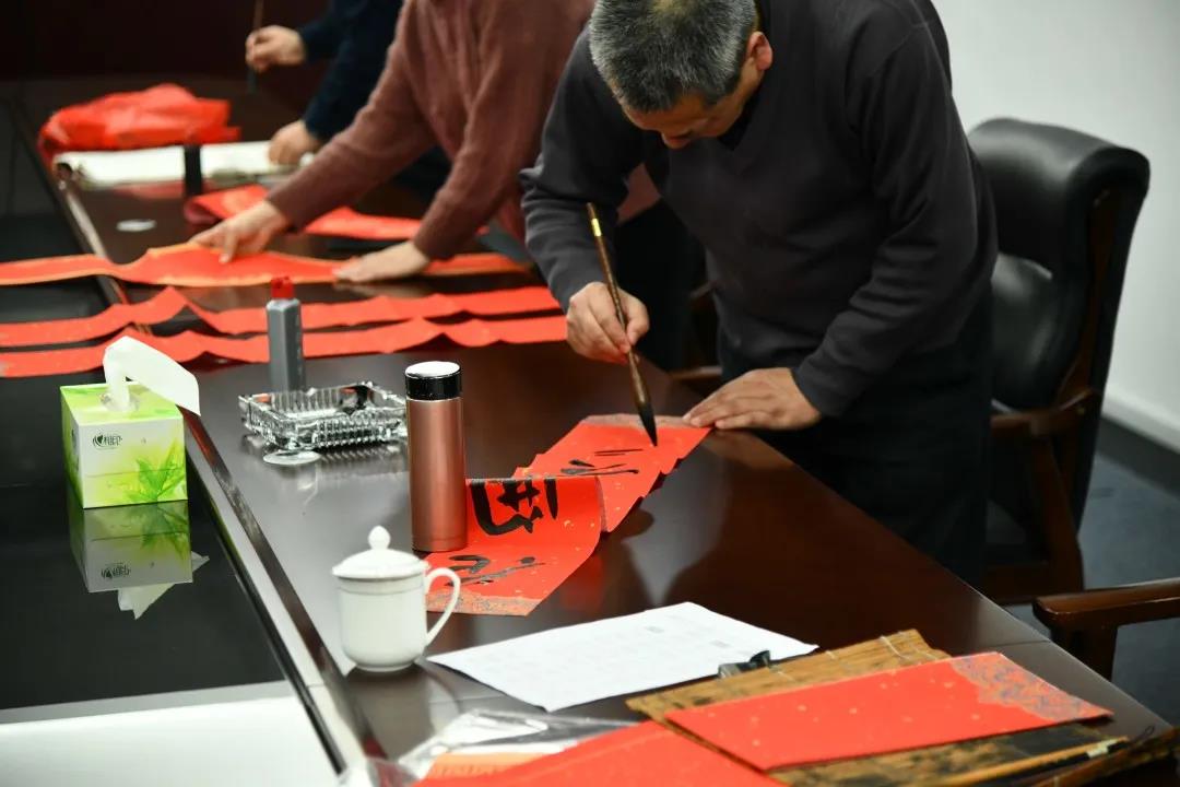 輕握銀筆飽蘸墨,又是一年春聯(lián)紅!1月30日,市交通集團書法興趣小組開展“迎春送福寫春聯(lián),翰墨飄香添年味”活動。中國書法家協(xié)會會員、江蘇省書法家協(xié)會常務理事、宿遷市文聯(lián)副主席、宿遷市書法家協(xié)會主席、宿遷市政協(xié)書畫室主任、國家二級美術師張守躍同志與大家共同揮毫潑墨、恭賀新春。