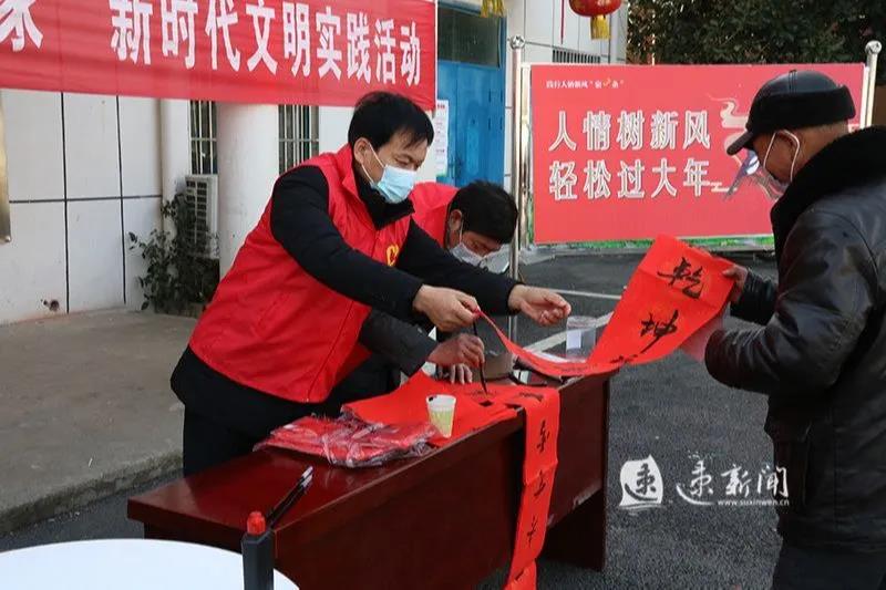 泗陽(yáng)縣臨河鎮(zhèn)書(shū)法志愿者服務(wù)隊(duì)協(xié)辦的身邊好人送“新風(fēng)”義務(wù)書(shū)寫(xiě)春聯(lián)活動(dòng);