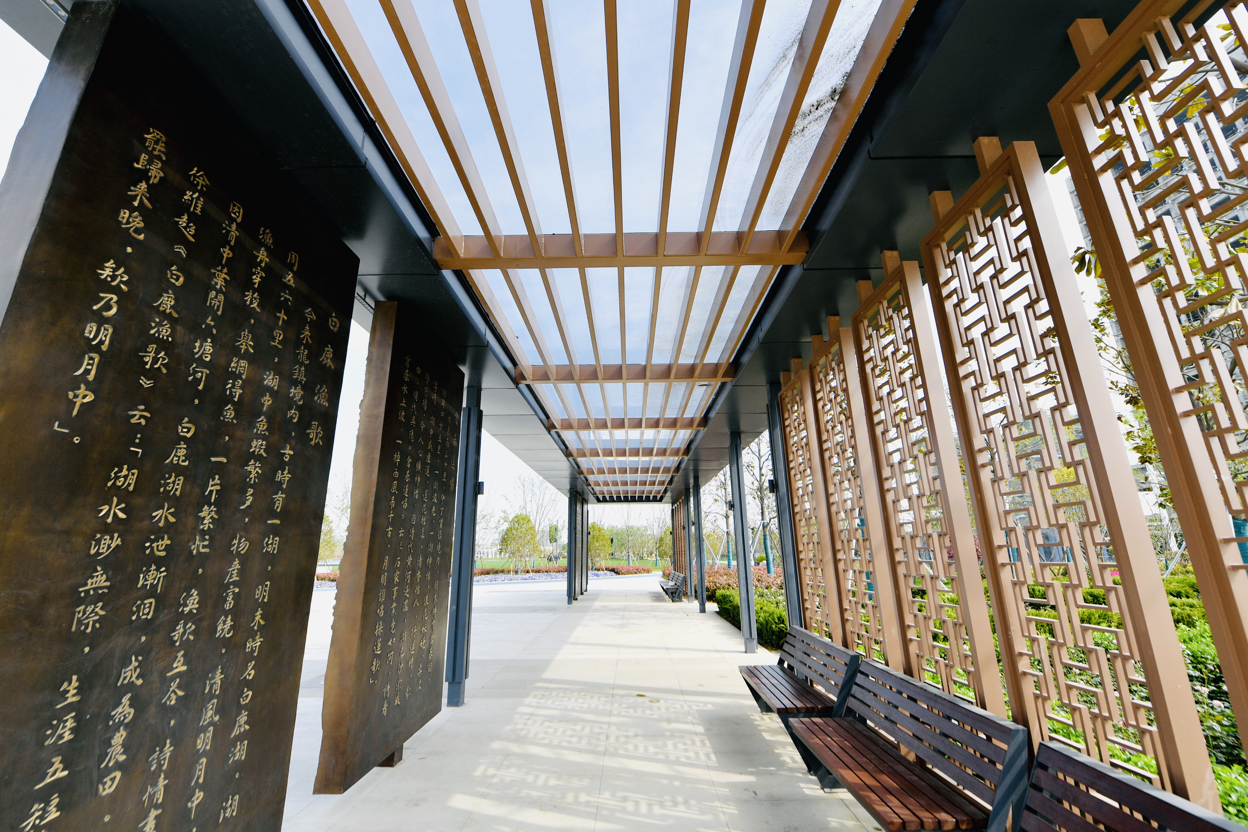 這美酒,流過(guò)八景廊架。白鹿?jié)O歌、倉(cāng)基蓮唱、草埝耕云、龍泉夜雨、馬陵秋月、梅村煮雪、司吾清曉、宿預(yù)早春,走過(guò)長(zhǎng)廊就穿越了四季,領(lǐng)略了這片土地上的風(fēng)花雪月。
