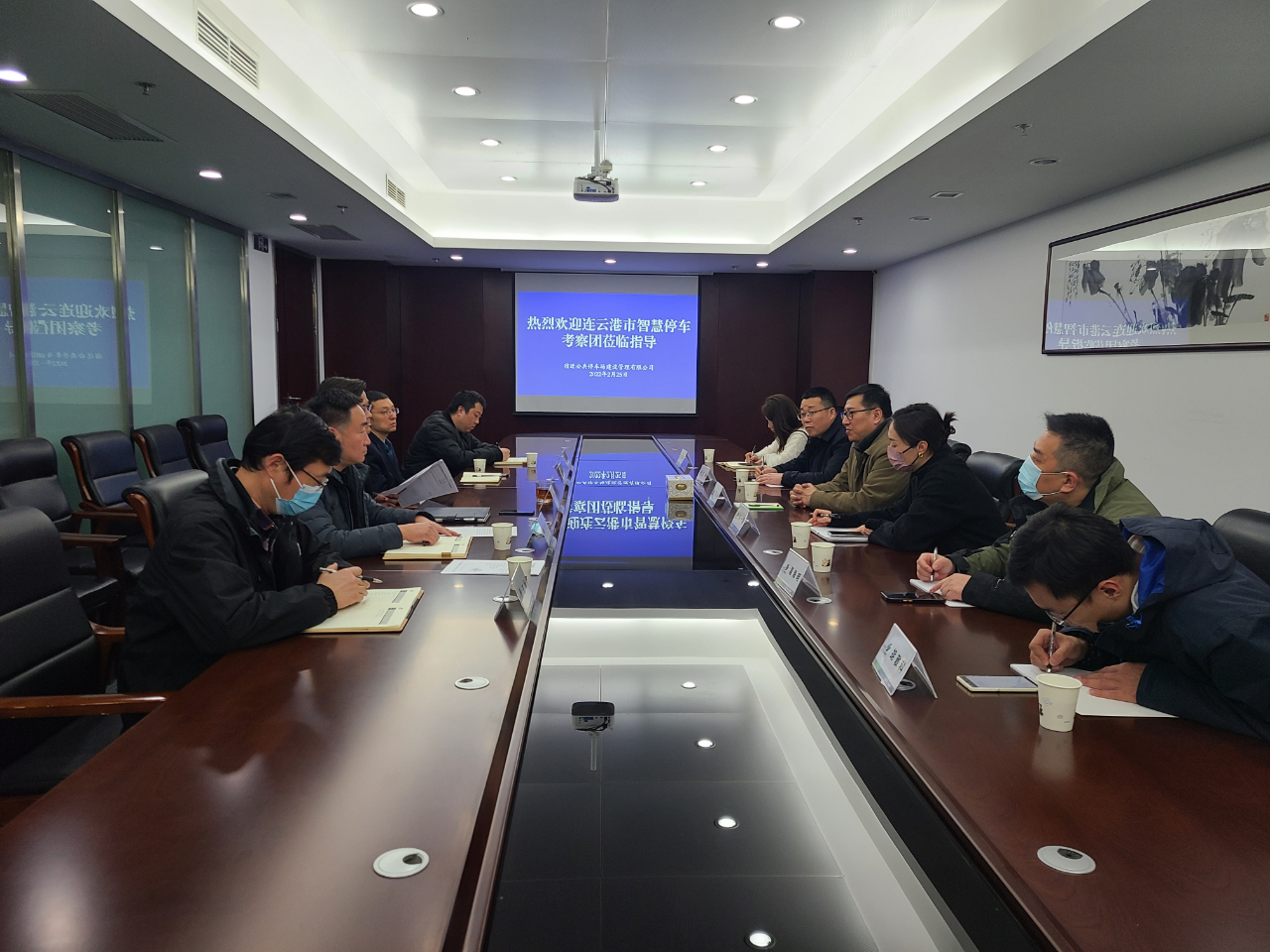 2月25日,連云港市汽車運輸有限公司副總經(jīng)理董紅波帶領(lǐng)智慧停車考察團至停車場公司考察學(xué)習(xí)道路停車及停車場建設(shè)方面管理經(jīng)驗。