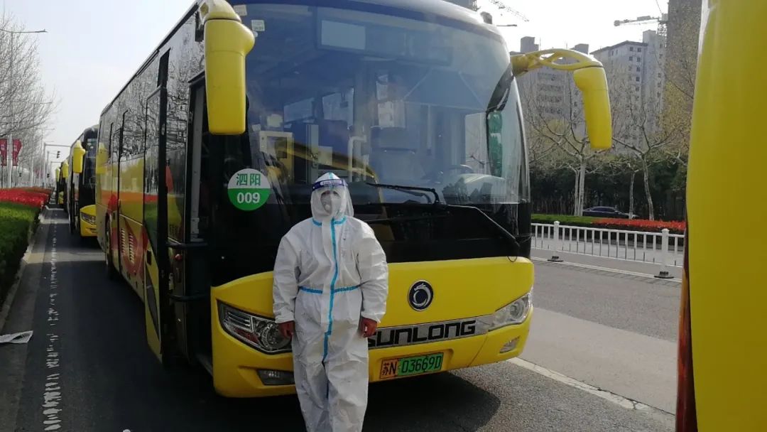 4月2日晚10點30分,公交公司20輛定制公交整齊地停放在宿遷澤達職業(yè)技術(shù)學院南側(cè)待命。為了迅速行動,20多名駕駛員堅守一線、枕戈待旦,連夜值守、和衣而眠,直至4月4日下午2點35分接到指令后方才撤離。