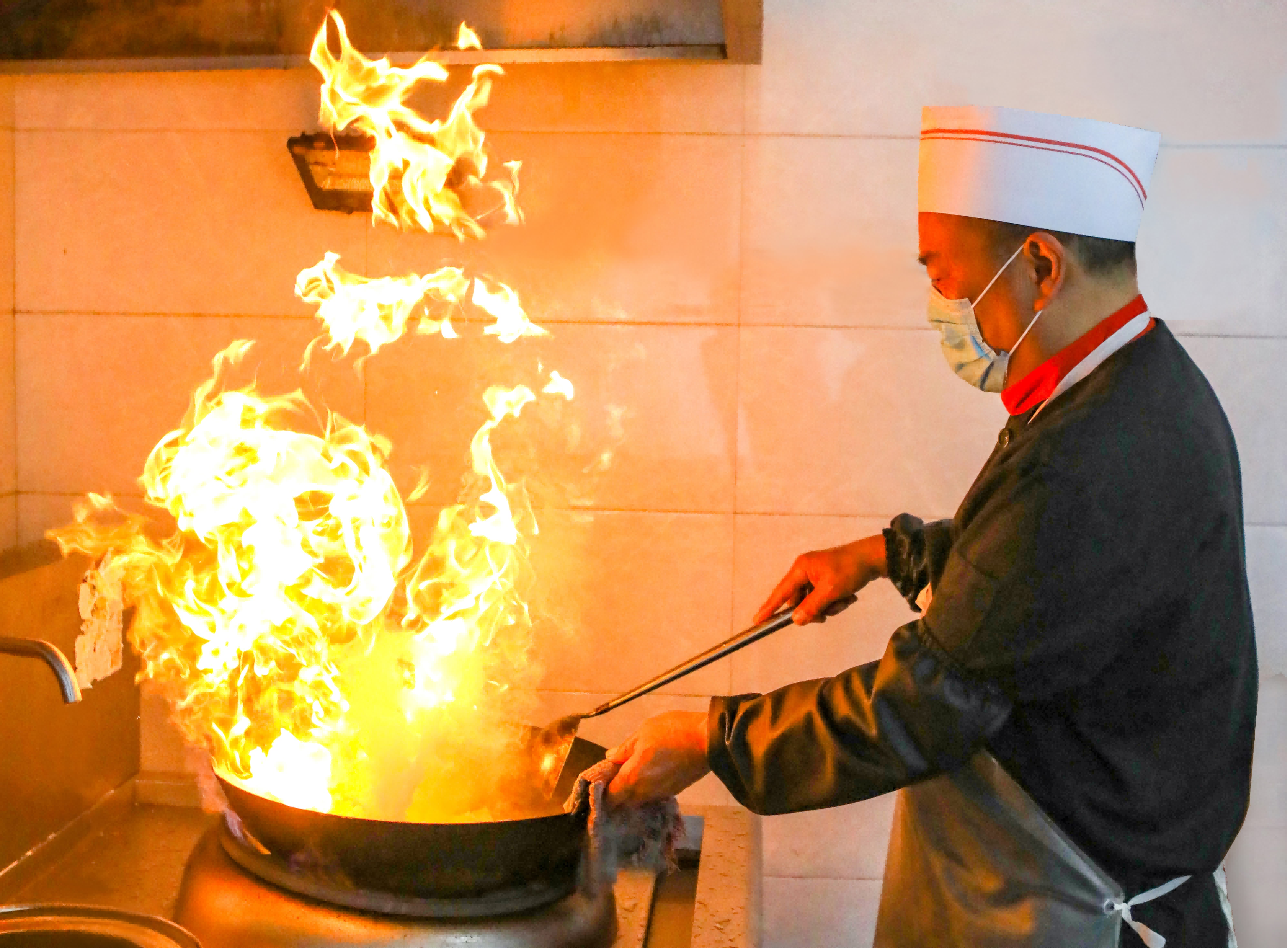 據(jù)陳啟東介紹,公交公司餐飲中心每天要消耗蔬菜、肉類、大米、面粉等食材兩千余斤,每名員工平均運(yùn)動步數(shù)兩萬余步,3名主廚、5名幫廚全年無休,只為讓公司員工吃上干凈、可口的飯菜。