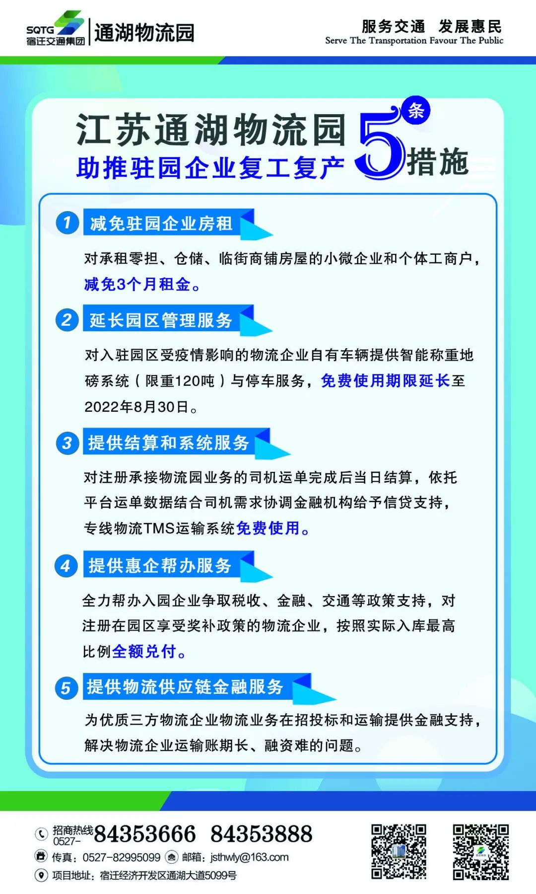 為積極應(yīng)對(duì)新冠肺炎疫情影響,近日,通湖物流園迅速響應(yīng)市委、市政府相關(guān)惠民措施,推出“惠企五條措施”,通過減免駐園企業(yè)房租、延長(zhǎng)園區(qū)管理服務(wù)、提供結(jié)算和系統(tǒng)服務(wù)、提供惠企幫辦服務(wù)、提供物流供應(yīng)鏈金融服務(wù),助推駐園企業(yè)復(fù)工復(fù)產(chǎn)。