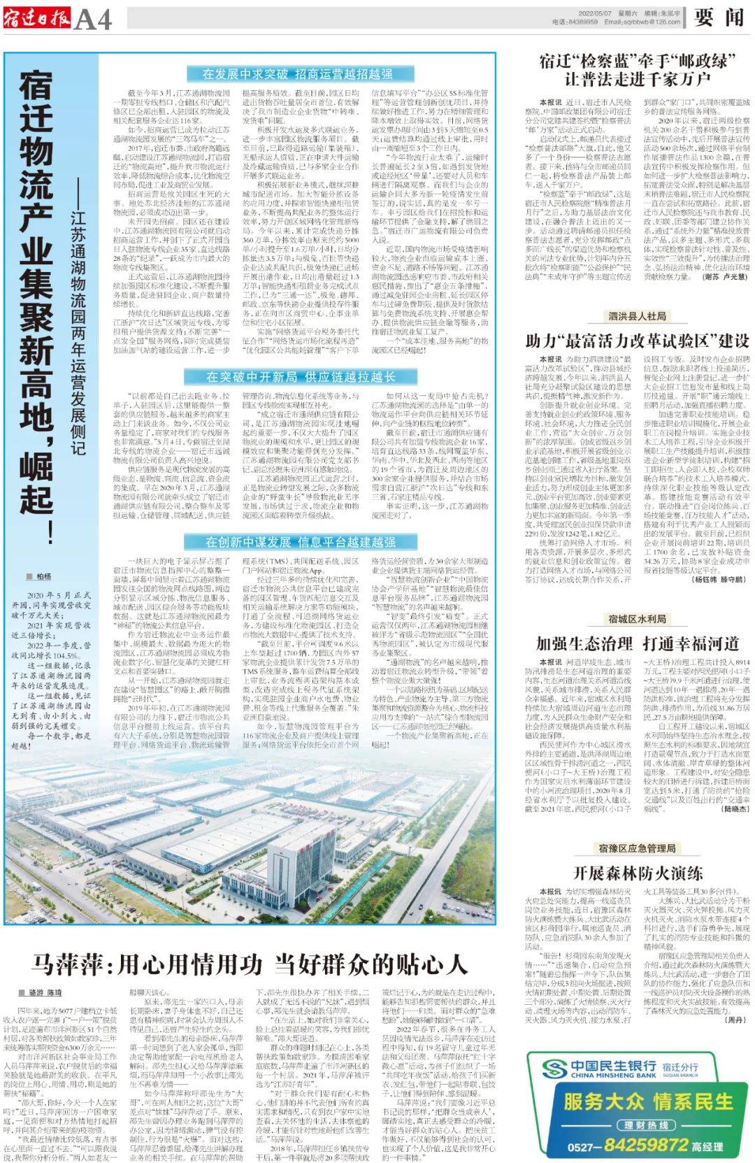 5月7日,宿遷日?qǐng)?bào)以《宿遷物流產(chǎn)業(yè)集聚新高地,崛起!——江蘇通湖物流園運(yùn)營(yíng)兩年發(fā)展側(cè)記》為題,展現(xiàn)了通湖物流園運(yùn)營(yíng)兩年以來由無到有、由小到大、由弱到強(qiáng)的完美嬗變。