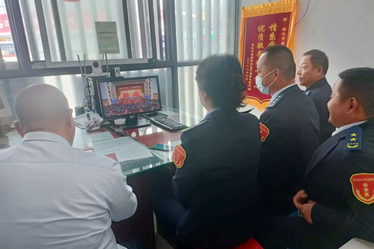 ▲停車場公司 組織收聽收看黨的二十大開幕會直播盛況