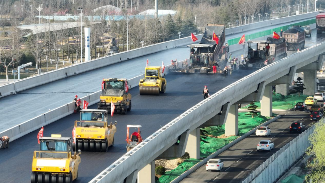 2月25日,青海湖路至駱馬湖路順利完成主線輔道瀝青下面層施工;