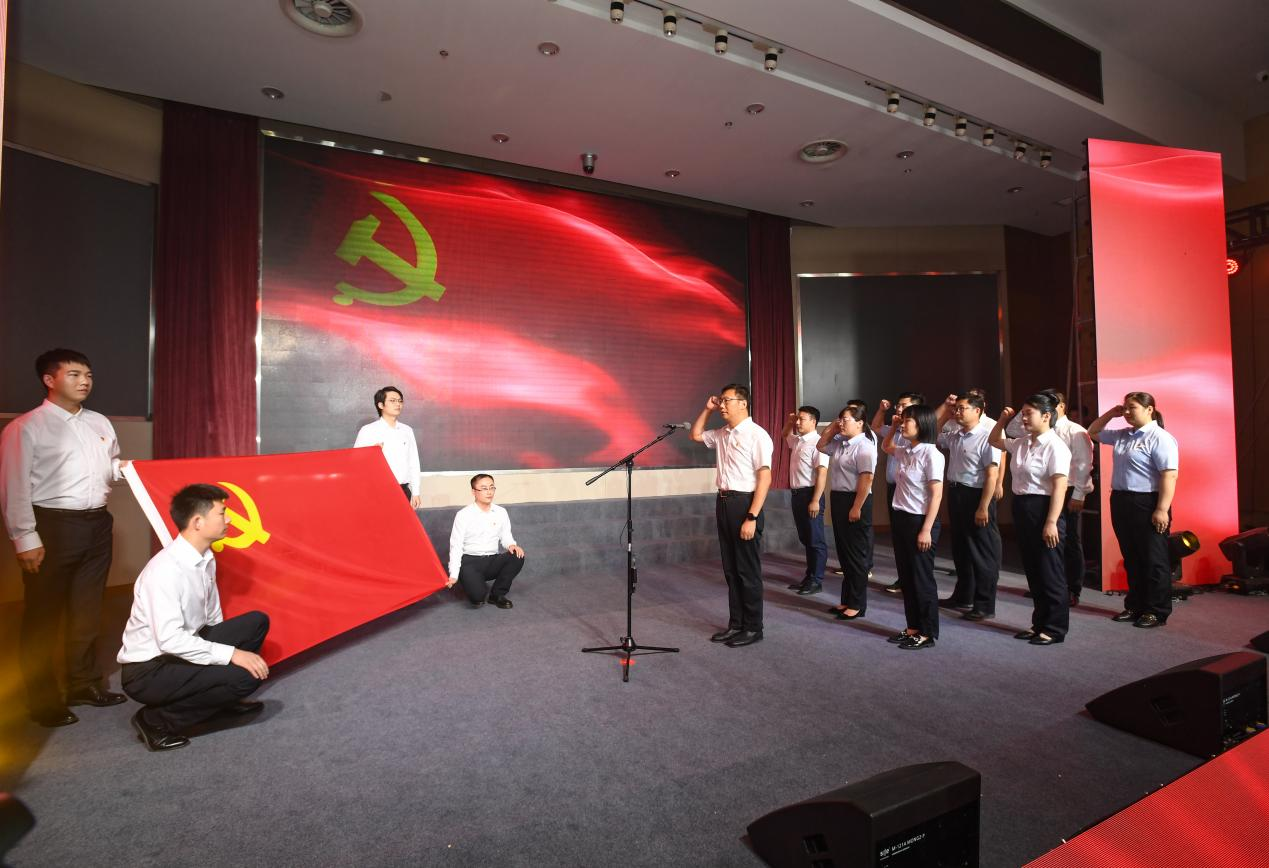 活動現(xiàn)場,邵巖帶領(lǐng)2023年度新發(fā)展黨員面向黨旗,高舉右拳、手握信念、莊嚴(yán)宣誓。集團(tuán)黨委副書記周斌、紀(jì)委書記田軍分別為2022年度“支部之星”代表頒獎(jiǎng)。