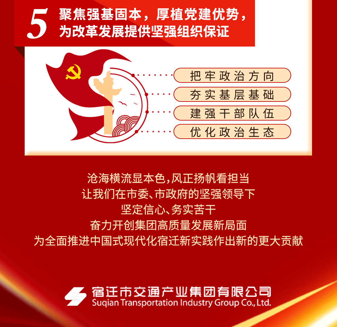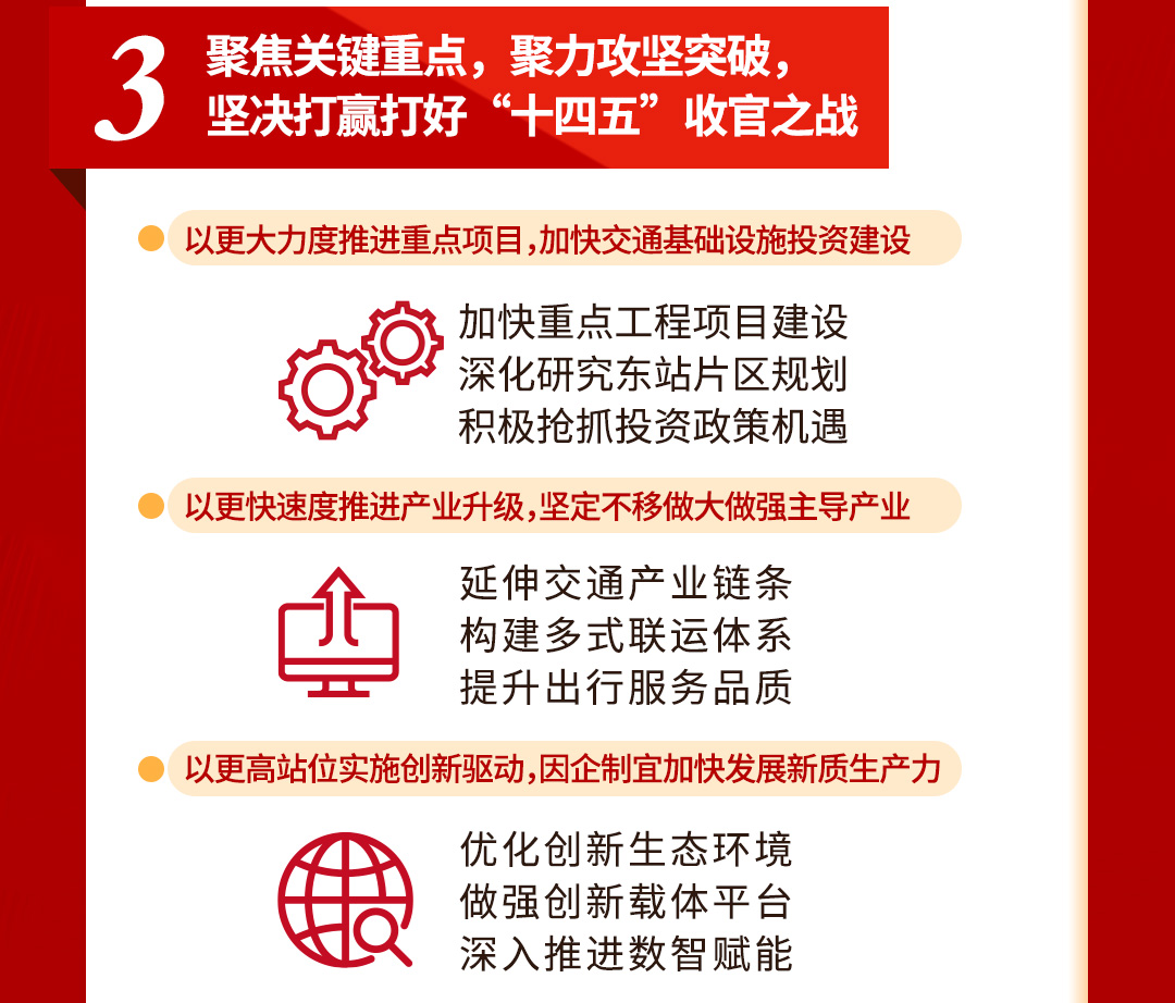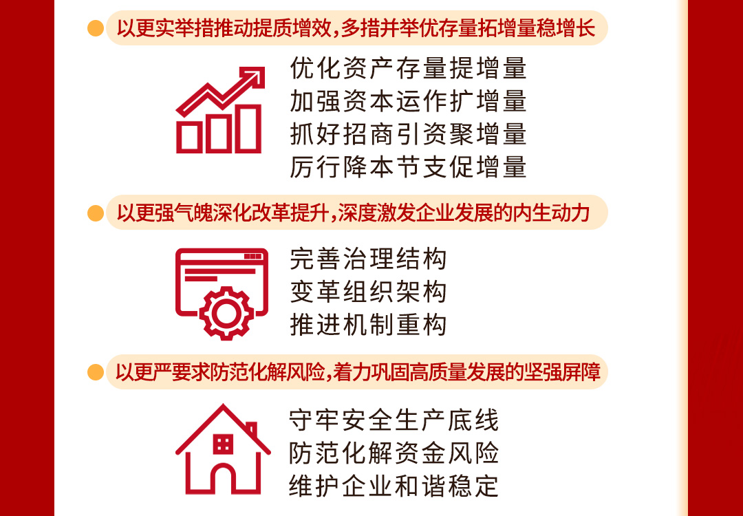 會議強調(diào),2025年是“十四五”規(guī)劃收官之年和“十五五”規(guī)劃謀劃之年,也是集團(tuán)轉(zhuǎn)型攻堅、加快發(fā)展的關(guān)鍵階段,集團(tuán)上下要聚焦增強核心功能、提高核心競爭力,聚力“高標(biāo)準(zhǔn)建設(shè)、高能級創(chuàng)新、高品質(zhì)服務(wù)、高效能治理、高水平安全、高質(zhì)量發(fā)展”,以更大力度推進(jìn)重點項目、加快交通基礎(chǔ)設(shè)施投資建設(shè),以更快速度推進(jìn)產(chǎn)業(yè)升級、堅定不移做大做強主導(dǎo)產(chǎn)業(yè),以更高站位實施創(chuàng)新驅(qū)動、因企制宜加快發(fā)展新質(zhì)生產(chǎn)力,以更實舉措推動提質(zhì)增效、多措并舉優(yōu)存量拓增量穩(wěn)增長,以更強氣魄深化改革提升、深度激發(fā)企業(yè)發(fā)展的內(nèi)生動力,以更嚴(yán)要求防范化解風(fēng)險、著力鞏固高質(zhì)量發(fā)展的堅強屏障,全力推動發(fā)展速度合理增長、產(chǎn)業(yè)結(jié)構(gòu)不斷優(yōu)化、質(zhì)量效益持續(xù)提升,奮力開創(chuàng)高質(zhì)量發(fā)展新局面,為全面推進(jìn)中國式現(xiàn)代化宿遷新實踐作出新的更大貢獻(xiàn)。