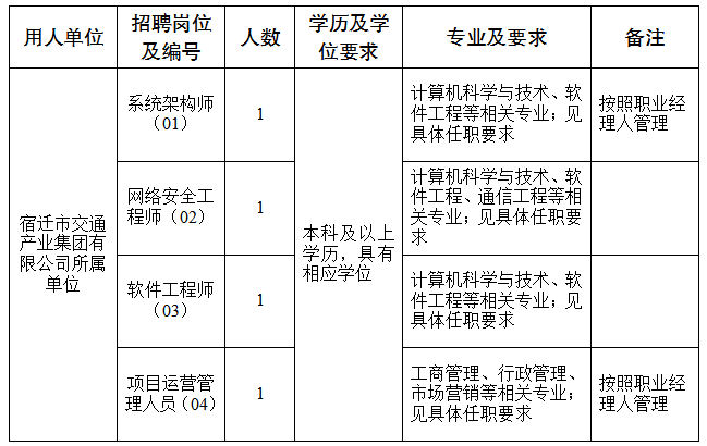 宿遷市交通產(chǎn)業(yè)集團有限公司2024年 招聘公告